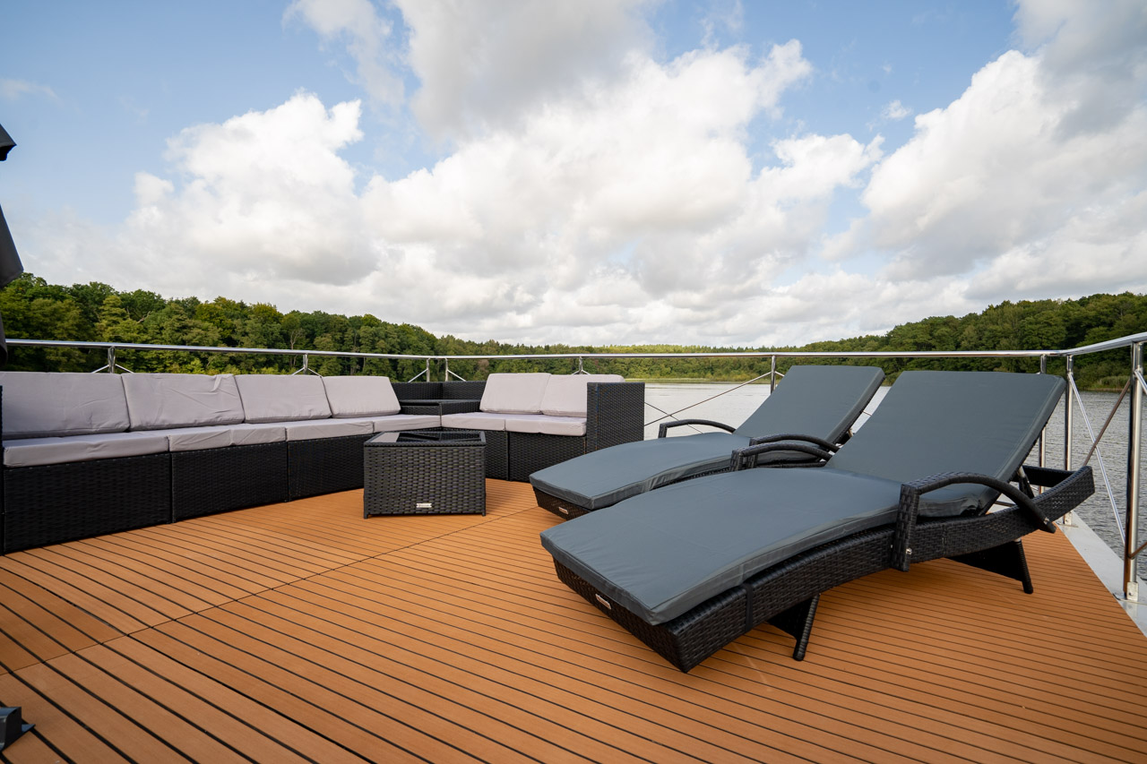"Führerscheinfrei" können auch Sie unser Hausboot mieten. Der Charterschein macht es möglich.